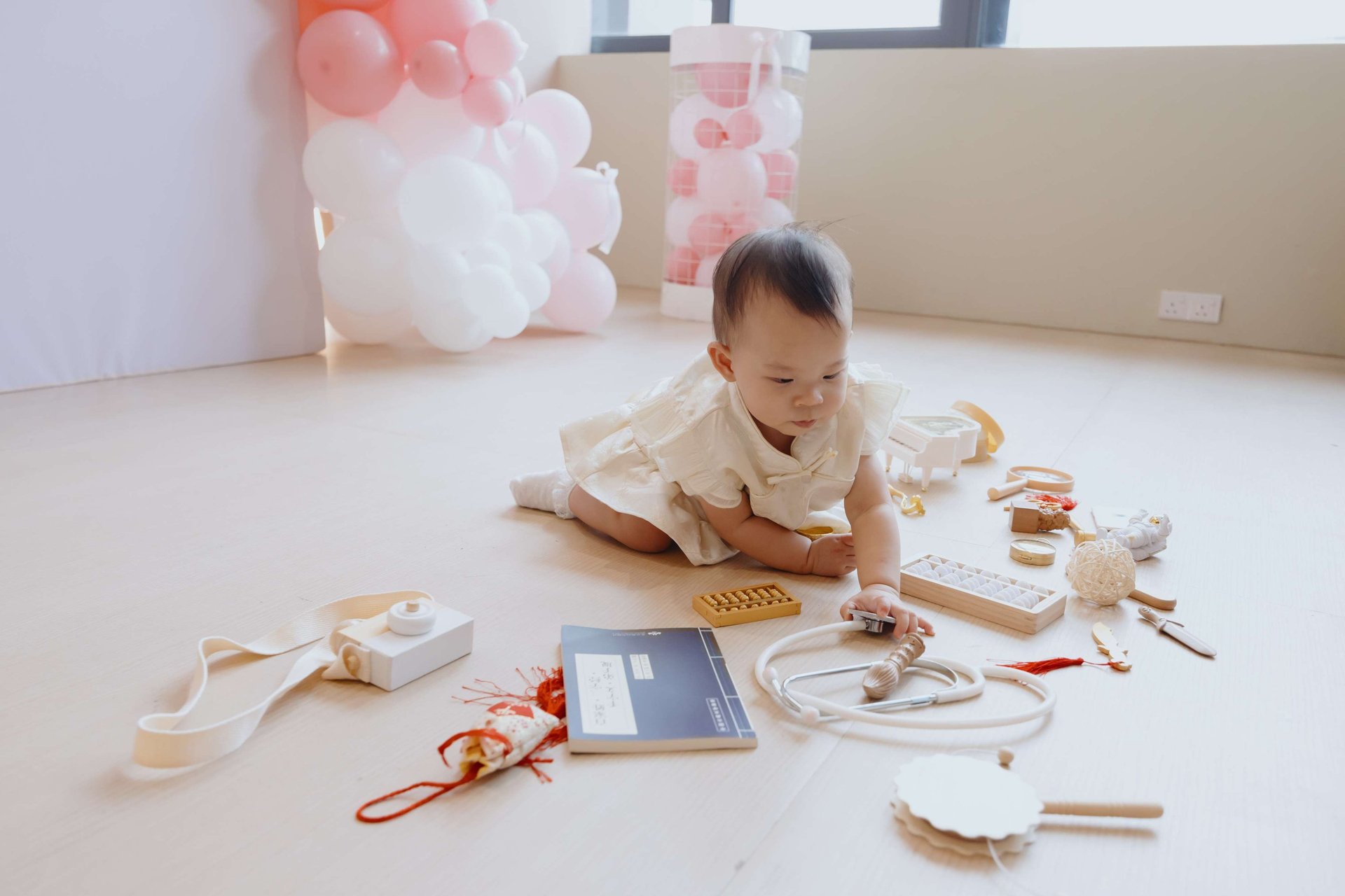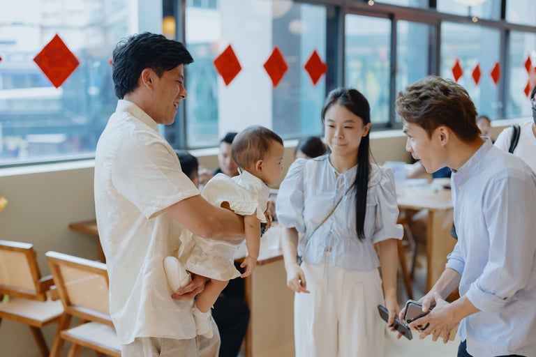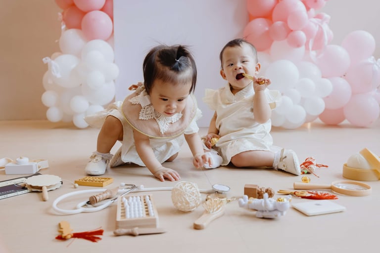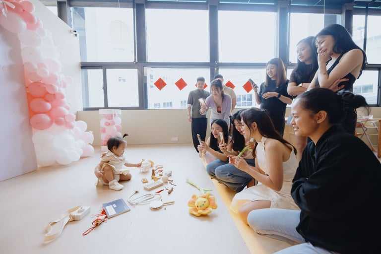 We captured natural, candid moments — from family interactions to the twins’ first birthday expressions. A highlight of the day was the Zhuazhou ceremony, where they chose symbolic items representing their future paths.
