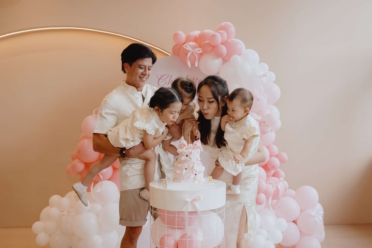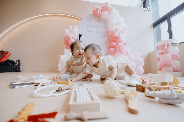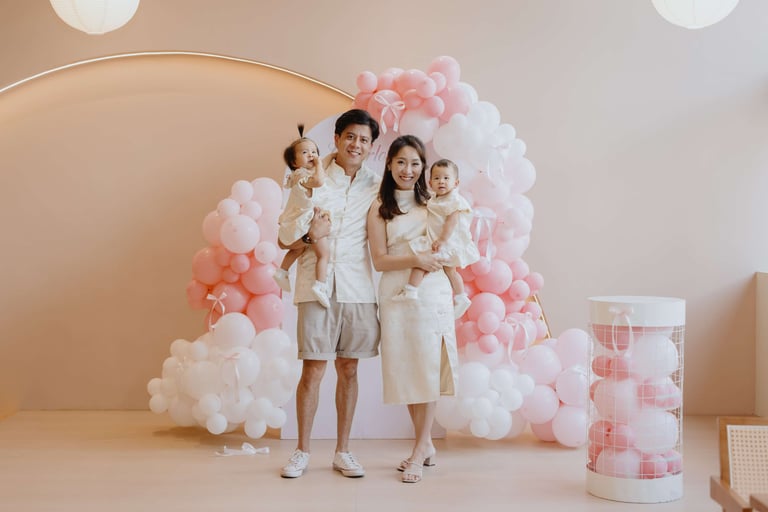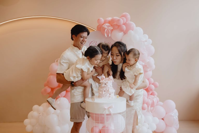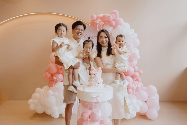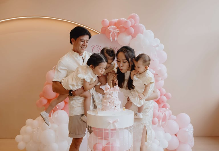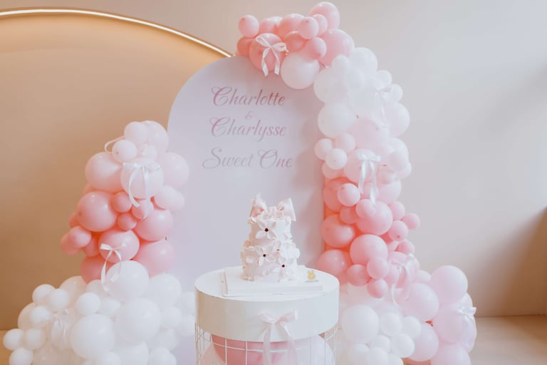 Charlotte and Charlysse’s first birthday was a joyful celebration filled with love, laughter, and meaningful moments. Styled with soft pastel tones, pink balloons, and warm lighting, the setup created a dreamy and elegant atmosphere.