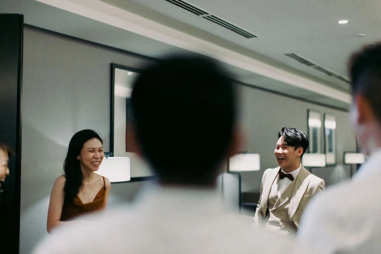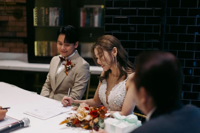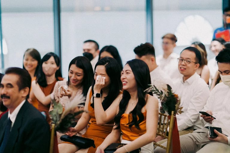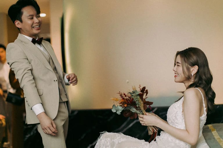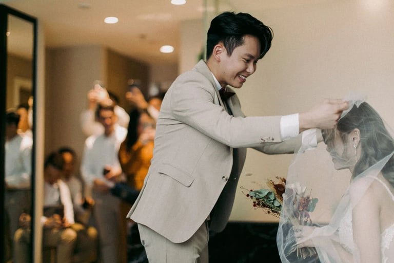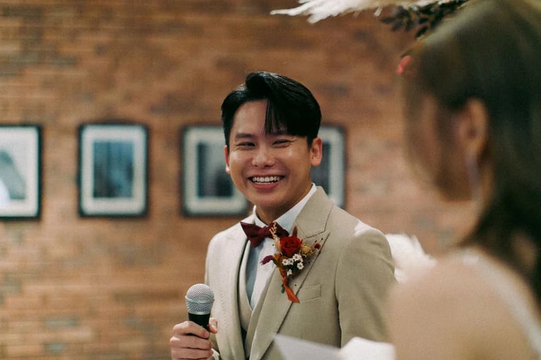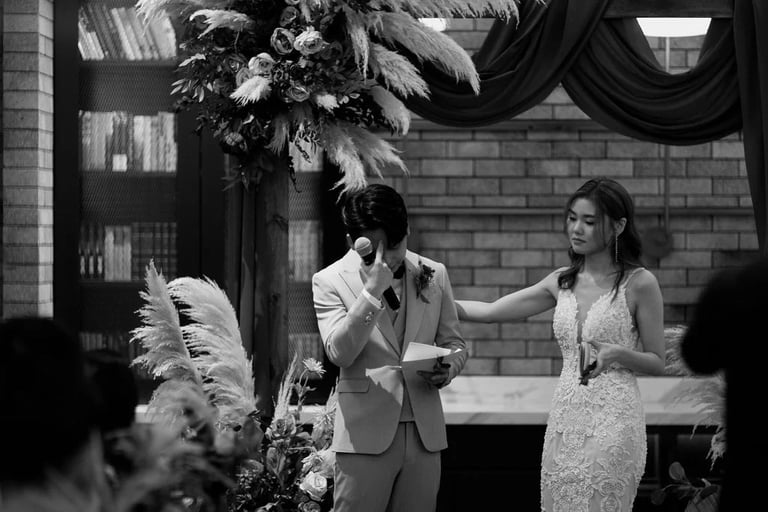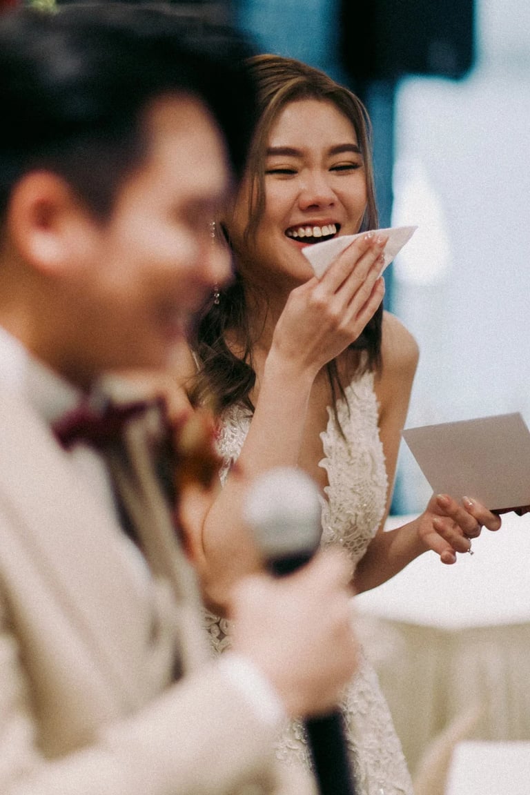 A quiet exchange, a gentle promise — and then, a room slowly filled with joy. 🤍 From the softness of “I do” to the warmth of shared laughter, each moment unfolded with an effortless grace, held closely by the presence of those who matter most.